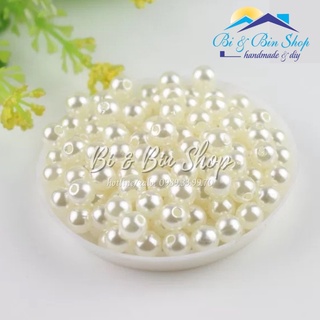 Hạt Trai Màu Kem Tròn Có Lỗ Giữa Nhiều Size Đính Kết Trang Phục, Làm Phụ Kiện Thời Trang
