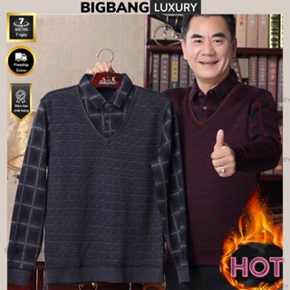 Áo len trung niên lót nỉ phối sơ mi siêu ấm Bigbang Luxury đồ quà tặng cho bố, tặng ông ý nghĩa