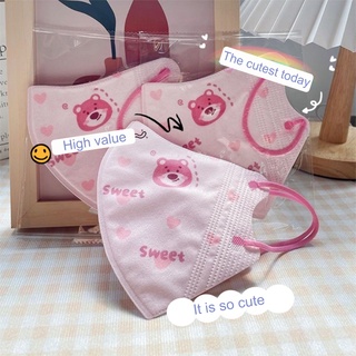Set 10 Khẩu Trang Dùng Một Lần Hình Gấu / Dâu 3D Dễ Thương Cho Bé 4-12 Tuổi