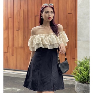 BIGSIZETIX Set áo trễ vai kèm váy dập li ngắn xinh xắn 50-90kg