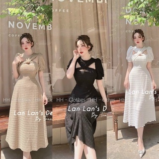 Bigsize Đầm dạ thiết kế khoét ngực đính nơ cách điệu xinh xắn 50-90kg