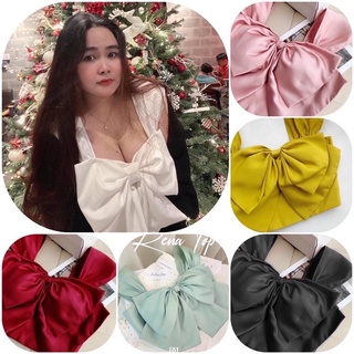 Bigsizetix Đầm bẹc vai tiểu thư phối nơ to sang chảnh 50-90kg co mẫu chụp thật