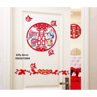 Decal chữ hỷ dán trầu cau, trái cây, vật dụng trang trí cưới hỏi