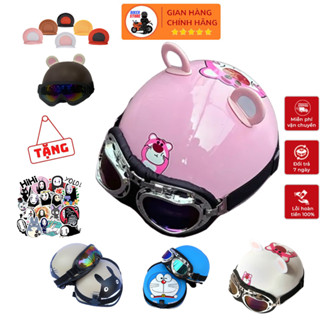 COMBO Mũ Bảo Hiểm 1/2 DAMTRAX VIÊT NAM + Kính Siêu Đẹp - Tặng Sticker + Tai Gấu