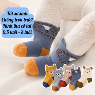 Sét 10 Đôi Tất Trẻ Em Tất Cho Bé Hình Thú Cotton Chống Trơn Trượt Cho Bé Trai, Bé Gái Đi Cực Xinh SS1