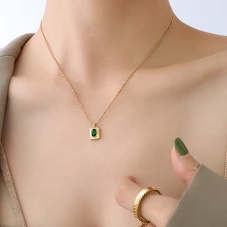 Dây Chuyền Titan Mặt Đá Nhân Tạo Màu Xanh Lá TT 4186