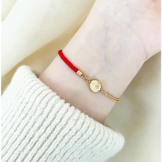 Lắc Tay Dây Đỏ May Mắn Chữ Phúc Titan Ko Đen TT 4385
