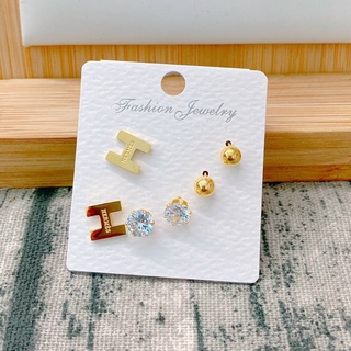 Bộ 3 Đôi Bông Tai Chữ H Titan Ko Đen TT 4423