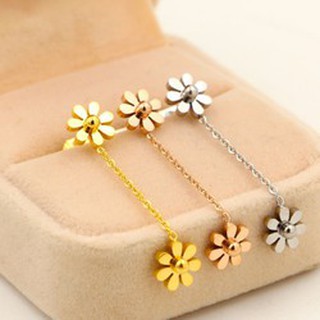 Bông Tai Hoa Cúc Chuỗi Dài Titan Ko Đen Cao Cấp TT 1305