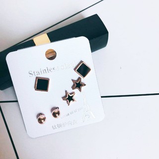Bộ 3 Đôi Bông Tai Hồ Ly Titan Ko Đen TT 2826