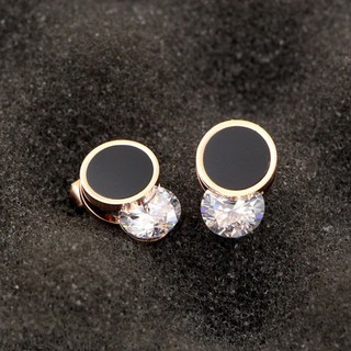 Bông Tai Hình Tròn Kẹp Đá Nhân Tạo Titan Ko Đen TT 3150