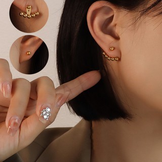 Bông Tai Khoen Tròn Hạt Bi Vàng Titan Ko Han Rỉ TT 3922