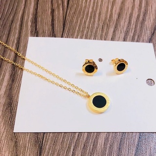 Bộ Trang Sức Nữ Bông Tai Và Dây Chuyền Titan Không Rỉ Mặt Tròn Đen Khắc Số La Mã TT 4095