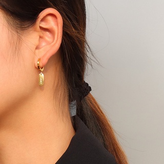 Bông Tai Bất Đối Xứng Hình Chữ Nhật Khắc Lucky Titan Ko Han Rỉ TT 3943