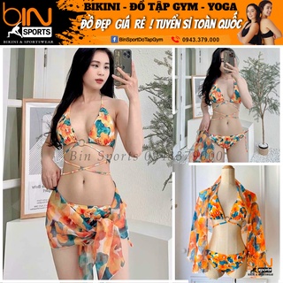 Bikini Nữ Hai Mảnh ComBo 2 Món, Đồ Bơi Đi Biển Hai Mảnh Kèm Khăn Voan Họa Tiết Sang Đẹp Binsports BHV168
