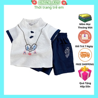 Bộ cộc tay cho bé trai, Đồ bộ hè cho bé in cổ trang chất đũi cực mát cho bé yêu-binbon kids