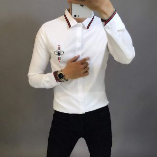 Áo sơ mi nam trắng trơn viền cổ, viền tay thêu hình nhện cá tính