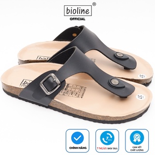 DK18 - Dép Đế Trấu BIOLINE Official Hai Quai Ngang Da Bò Lót Pu Kem Chống Nước