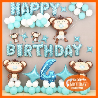 Set Trang Trí Sinh Nhật TUỔI KHỈ Cho Bé Trai, Bé Gái, Bóng Y Hình Tặng Kèm Đồ Bơm Băng Dính
