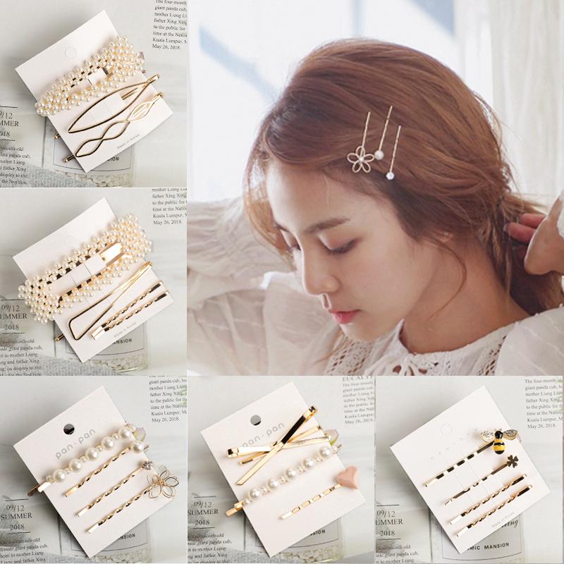 Set 3 kẹp tóc thời trang thiết kế đính ngọc trai xinh xắn làm từ kim loại dành cho nữ