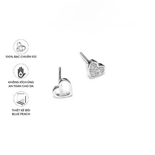 Khuyên Tai Bạc Blue Peach Tim Đá Rỗng KT329