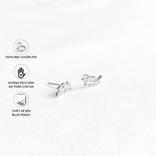 Khuyên Tai Bạc Blue Peach Cỏ 3 lá KT435
