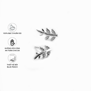 Khuyên Tai Bạc Blue Peach Lá WG KT302