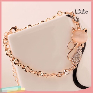 Vòng Tay Hợp Kim Mạ Vàng Trang Trí Hình Mèo Đính Đá Opal Thời Trang Cho Nữ