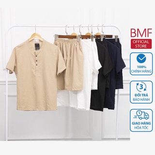 Bộ đũi nam cổ tàu thời trang Đồ bộ nam mặc nhà cao cấp chất liệu đũi xước mềm mại BMF