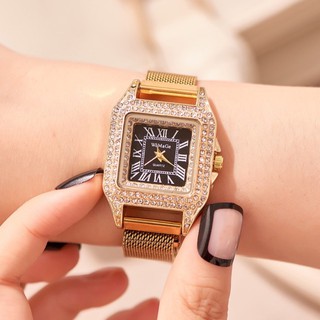 [TẶNG KÈM PIN] Đồng Hồ Nữ WOMAGE Mặt Vuông Đính Đá Dây Khóa Nam Châm Sang Chảnh Độc Đáo