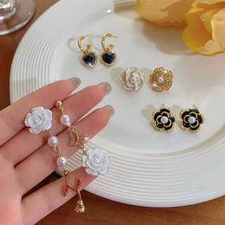 Bông tai hoa trà thanh lịch phong cách Hàn Quốc