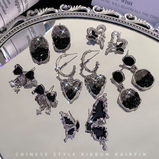 Bông Tai Hình Bướm Đen Đính Đá Phong Cách Retro Thời Trang 2023 Dành Cho Nữ