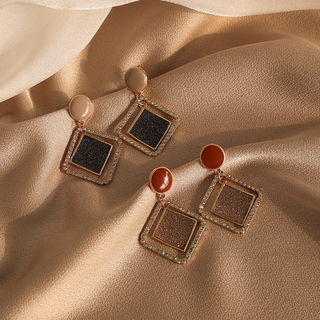 Bông Tai Kim Bạc Hình Vuông Phong Cách Retro Cho Nữ