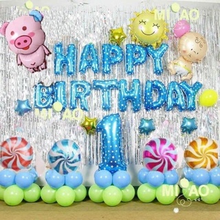[KHUYẾN MẠI] Set bóng trang trí sinh nhật kèm rèm cho bé trai/gái{TẶNG BƠM + KEO}