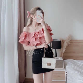 Sét bộ thời trang nữ trễ vai bèo lai croptop phối chân váy tuyết mưa sang chảnh quý phái