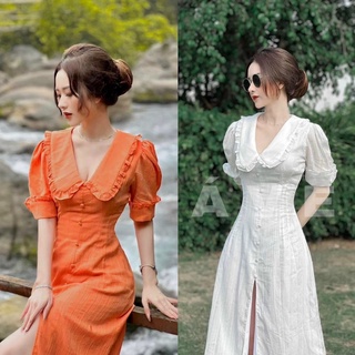 Đầm váy nữ tay bèo nút bọc, màu trắng tinh khôi, xinh xắn dạo phố, dự tiệc