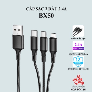 Dây sạc đa năng BOROFONE BX50 3 đầu IP-Micro-TypeC hỗ trợ dòng sạc 2.4A bọc dù chống đứt gãy