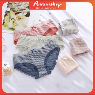 Quần Lót Cotton Tôn Dáng Nữ Muối Tiêu Kẻ Caro Kháng Khuẩn Chống Viêm Viền Ren Gợi Cảm Đính Nơ Dễ Thương
