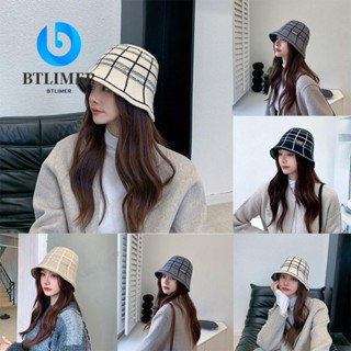 Btlimer Mũ Bucket Dệt Kim Giả Len Họa Tiết Kẻ Sọc Đơn Giản Cổ Điển