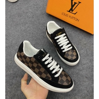 Giầy buộc dây LV dập vân ô vuông hoạ tiết chìm đế cao, Giầy nam thời trang mũi tròn btshop từ 38 đến 42