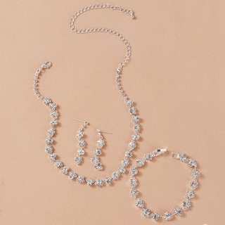 Bộ Trang Sức Thời Trang Màu Bạc Đính Kim Cương Nhân Tạo Cho Cô Dâu