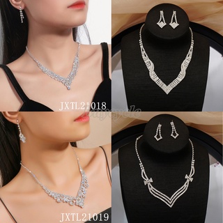 Bộ Bông Tai Và Dây Chuyền Đính Đá Thời Trang Dành Cho Cô Dâu