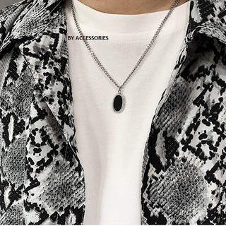 Dây chuyền titan unisex mặt tròn và oval đen style retro không gỉ UN191002