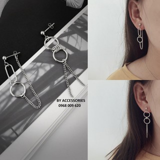 Khuyên tai unisex tam giác phối xích gắn vành ko gỉ có 2 loại xỏ và ko xỏ lỗ