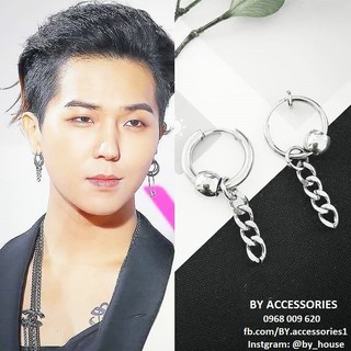 Bông tai unisex khoen tròn phối thanh dài và xích ko gỉ Yugeom Got7