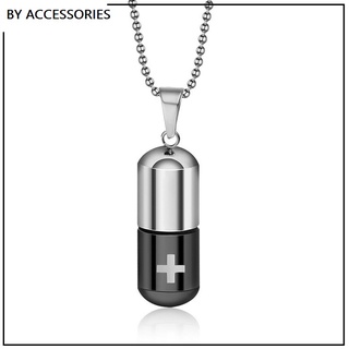 Dây chuyền inox chuỗi bi tròn phối mặt hình viên thuốc chữ thập không gỉ