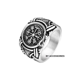 Nhẫn nam titan mặt tròn biểu tượng viking hình la bàn Vegvisir không gỉ MR201103
