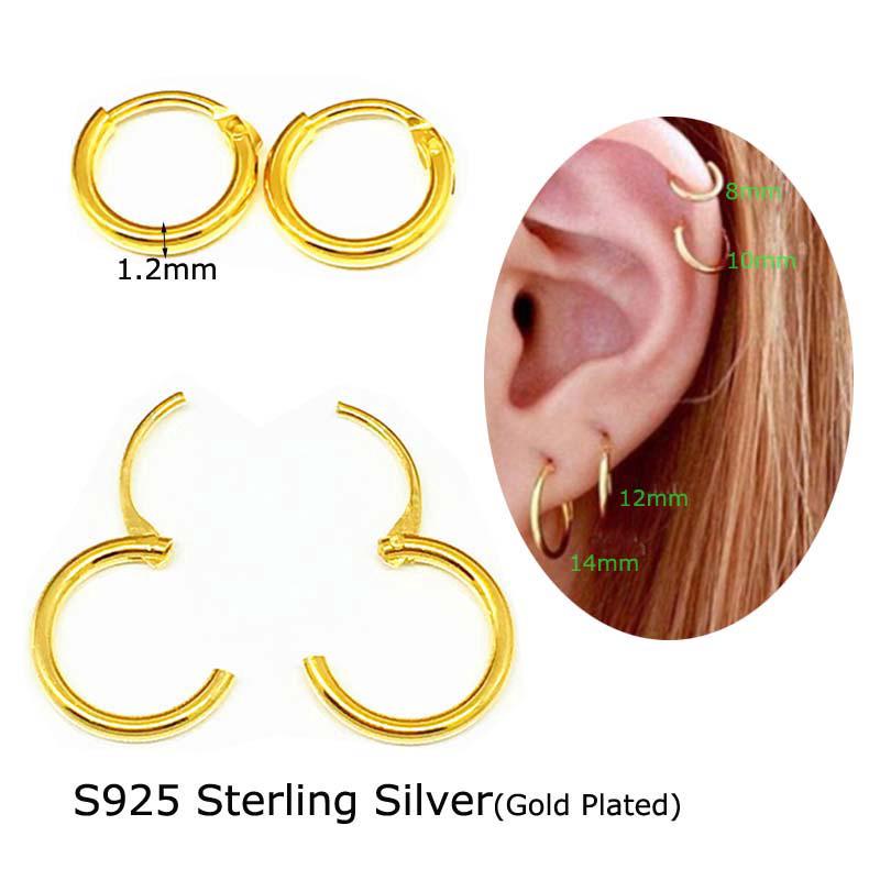 Đôi khuyên tai hình tròn 8-20mm bằng bạc 925 mạ vàng kiểu dáng đơn giản hợp thời trang