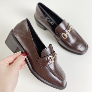 Giày Loafer Moca Moccasi Nữ Màu Đen Nâu Đế Thấp Quai Kim Cao Cấp