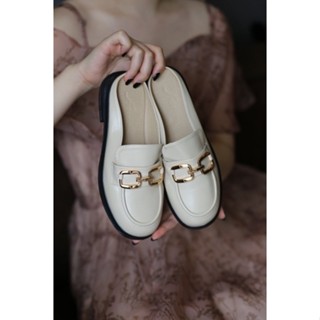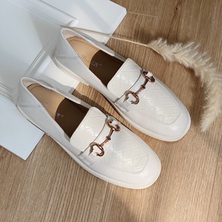Giày Lười Xỏ Loafers Mocca Moca Nữ Cao Cấp Màu Kem Đen Basic